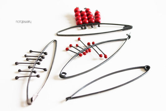 Big Black Silver Modern red Shawl Pin / Brooch
