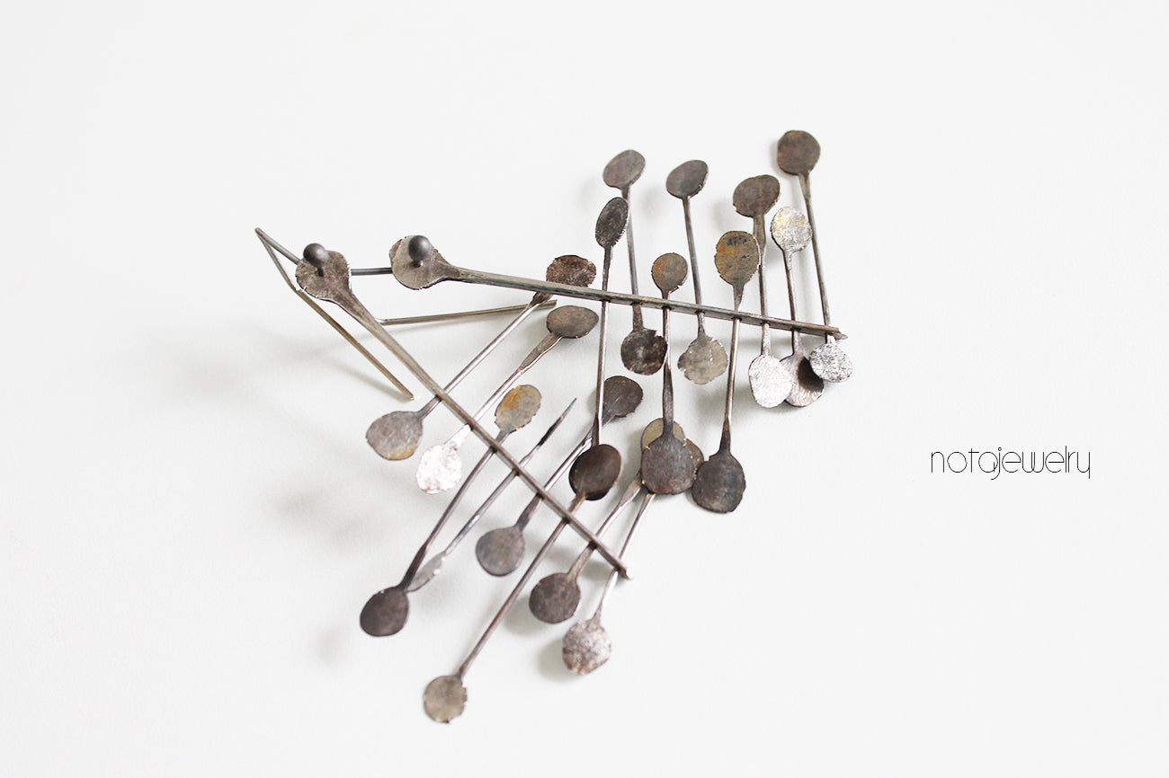 Contemporary jewelry made of silver, copper, and brass in combination with alternative materials where every detail is made by hand and from the heart.