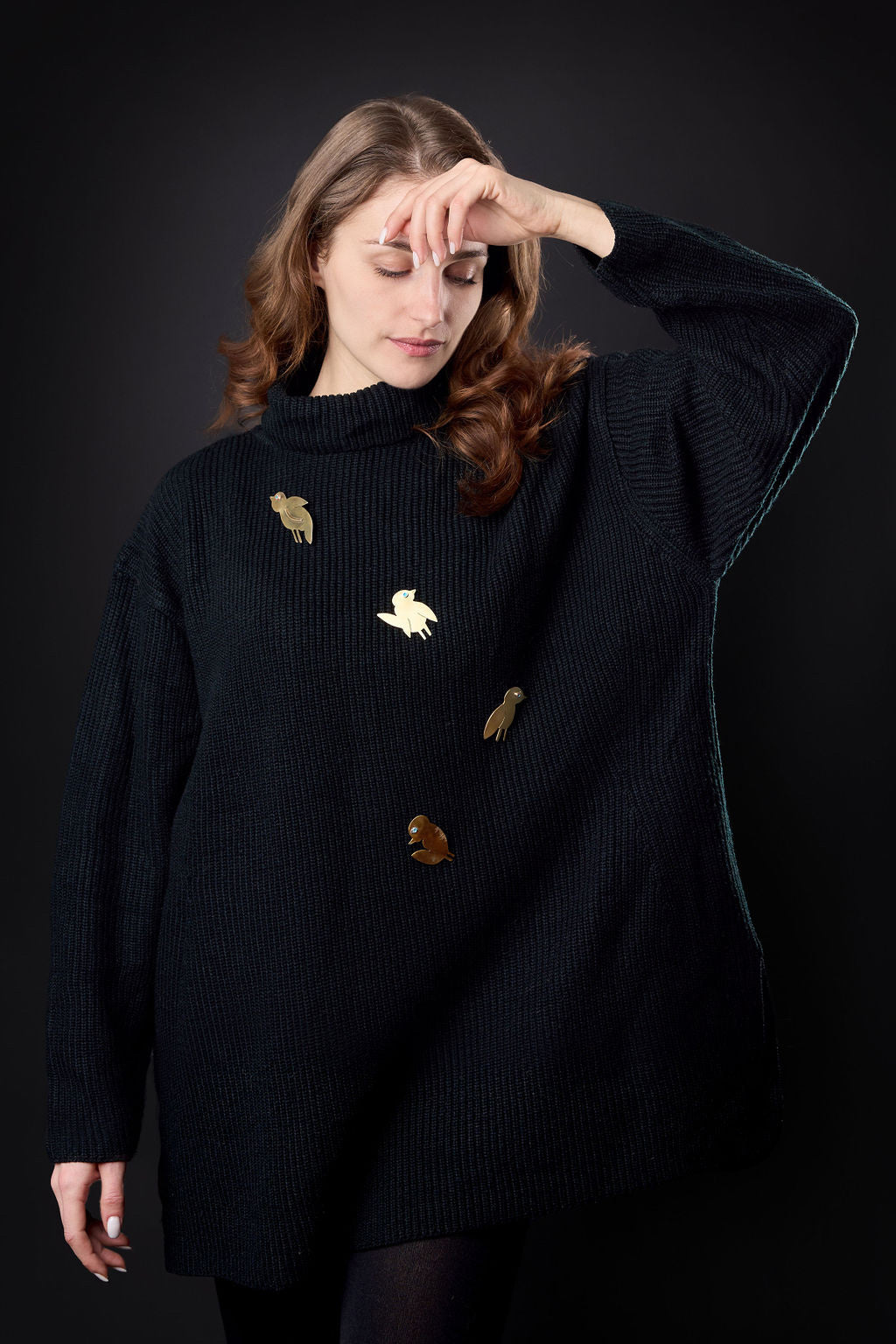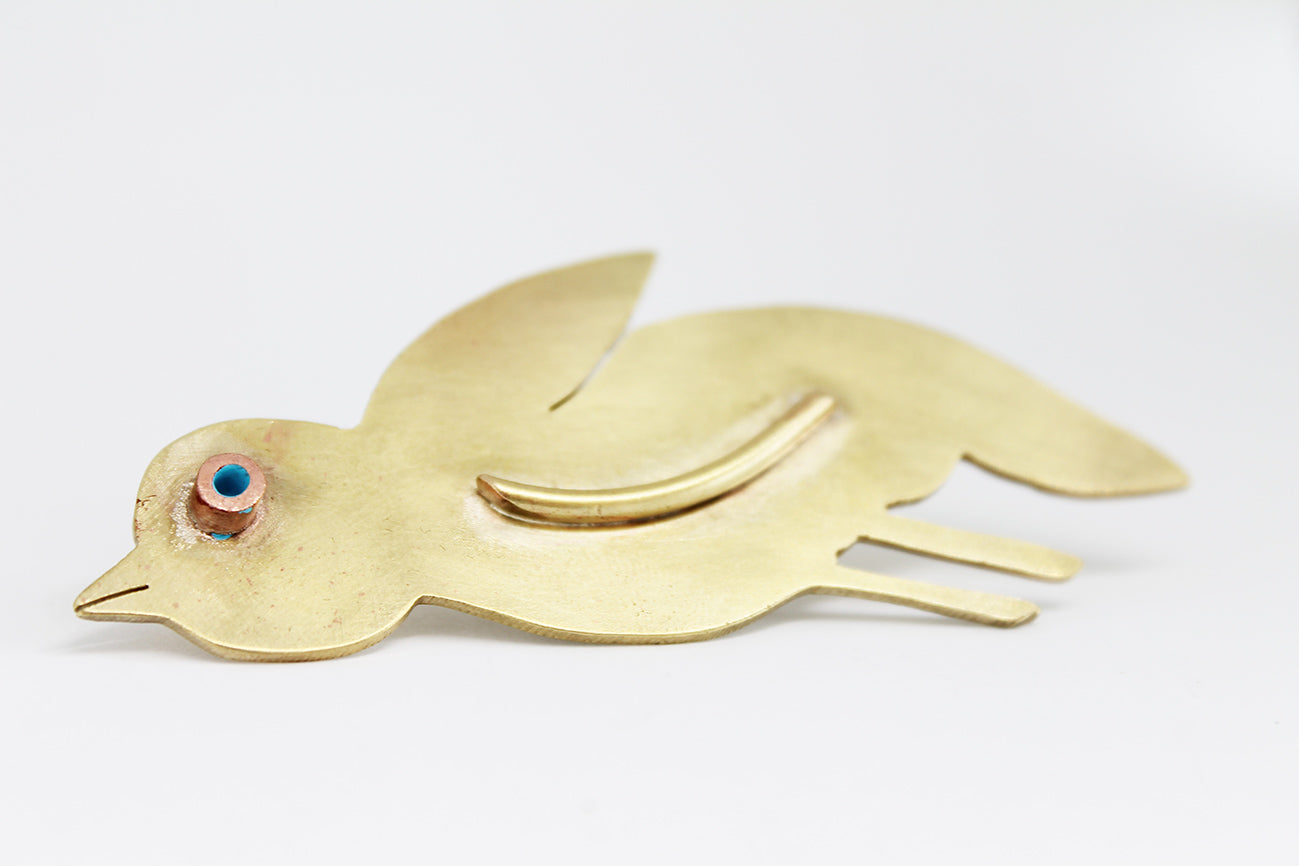 Unique and statement brooch pin, one of limited and small "Bird" collection made without repetition.