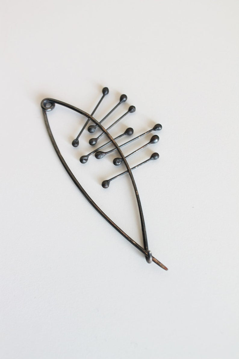 Fibula is made of oxidized sterling silver decorated with a few silver granulations.