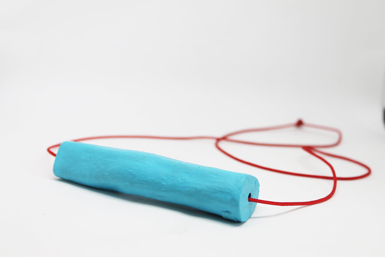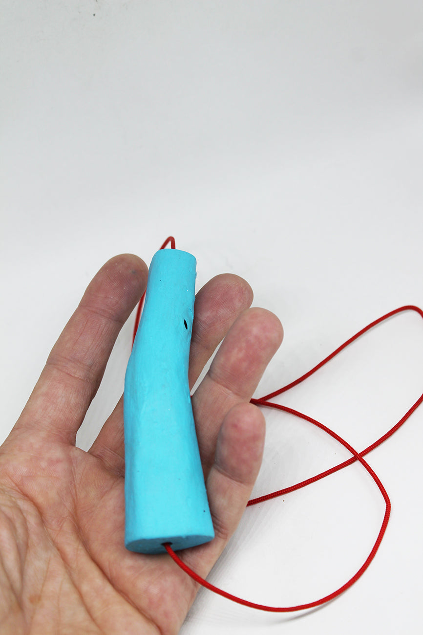 Coloured in light baby blue colour and connected with red thread , this artsy open pendant necklace gives a little twist to your outfit :)