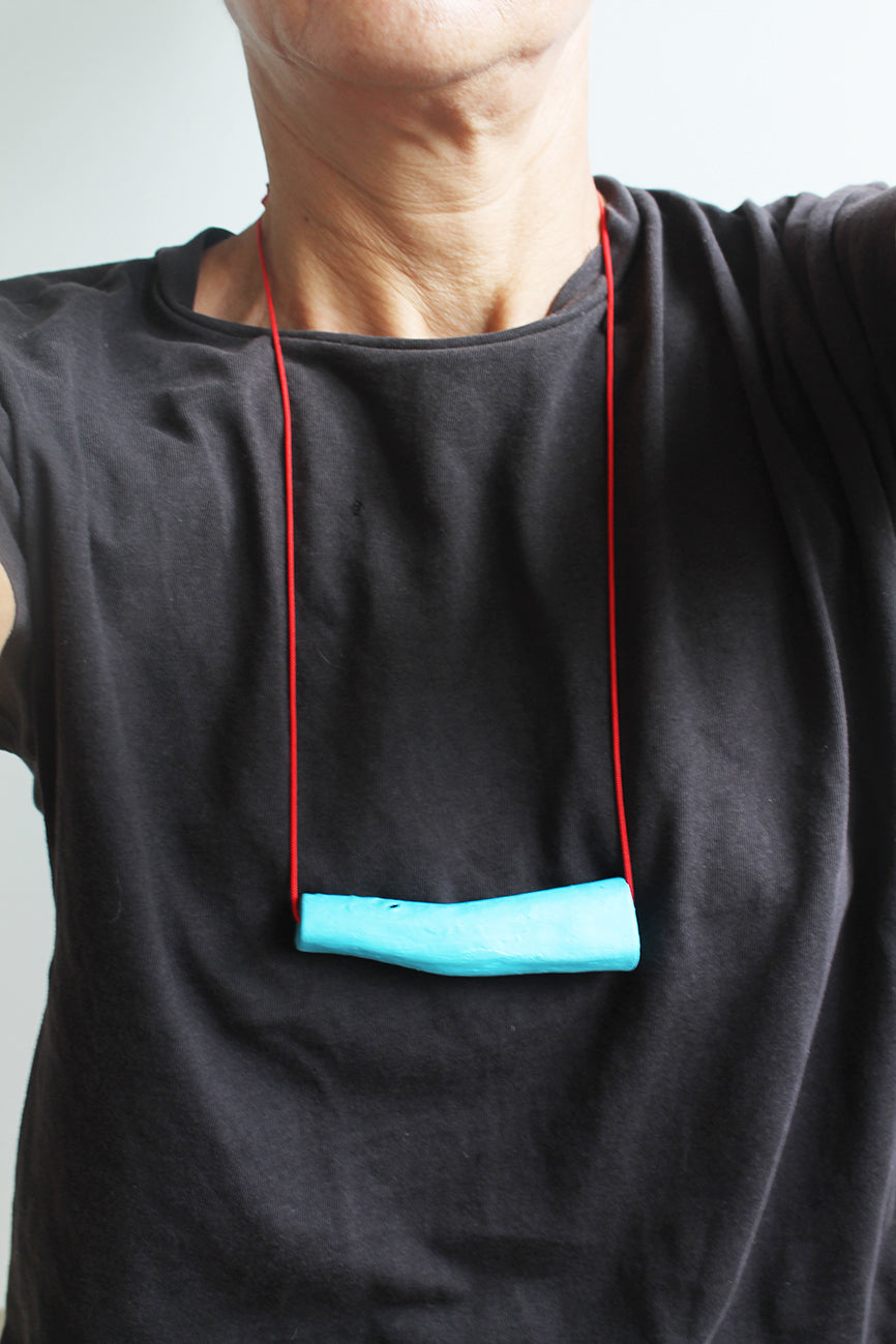 this necklace used to be one yellow brooch among 5 of them from "insight" brooches collection. As I was not satisfied with it's needle I transform it in this eye-catching blue delight!
