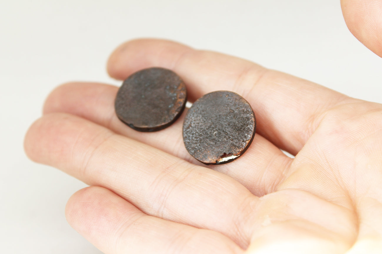 Made of reticulated copper, eventually oxidized / patinated by hand giving them antique, elegant "brownish" touch.
