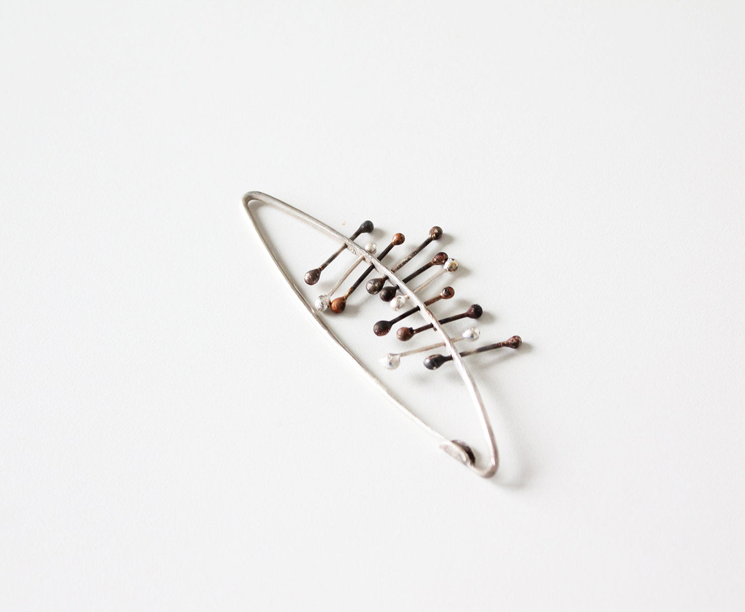 Contemporary jewelry made of silver, copper, and brass in combination with alternative materials where every detail is made by hand and from the heart.