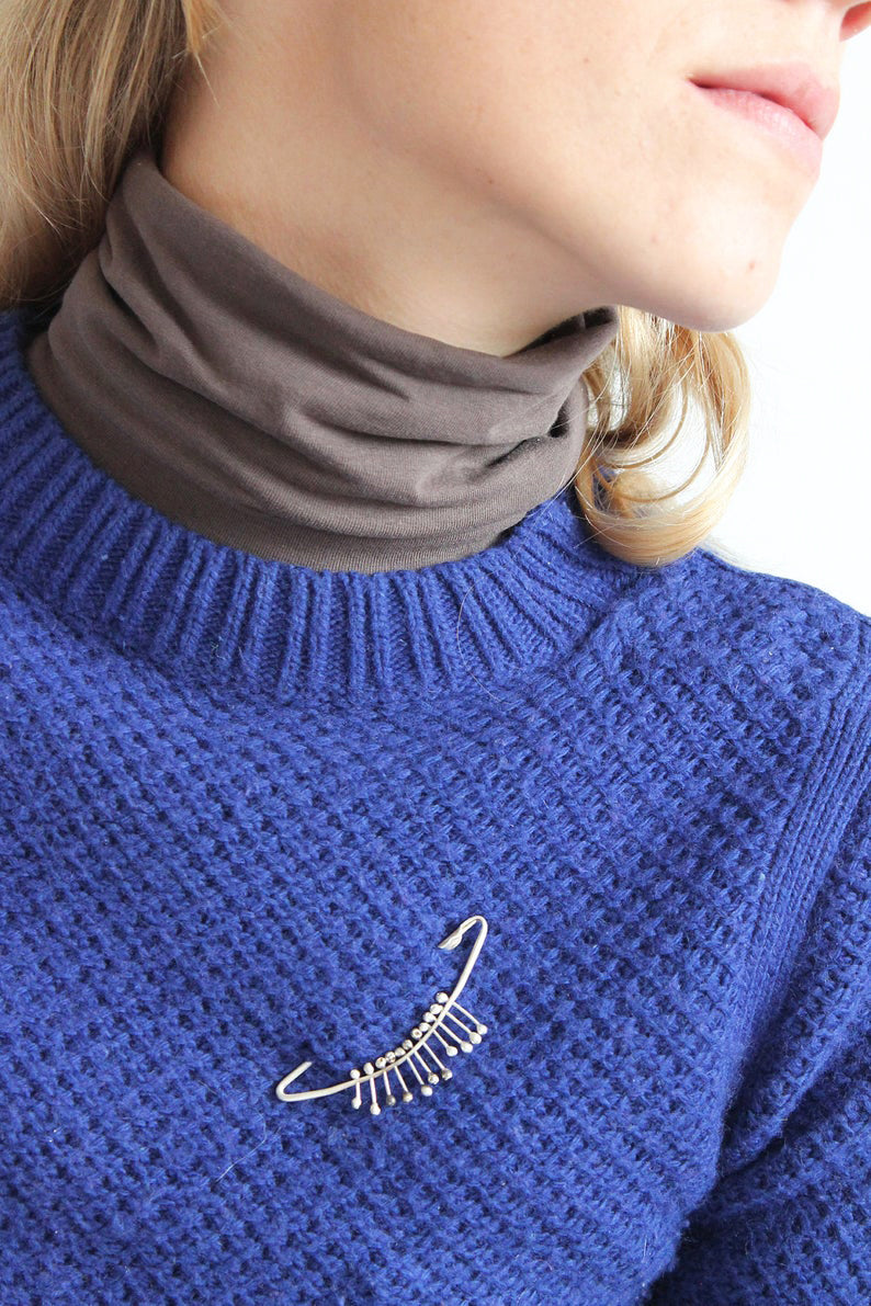 This is modern and contemporary silver handcrafted shawl / sweater pin.