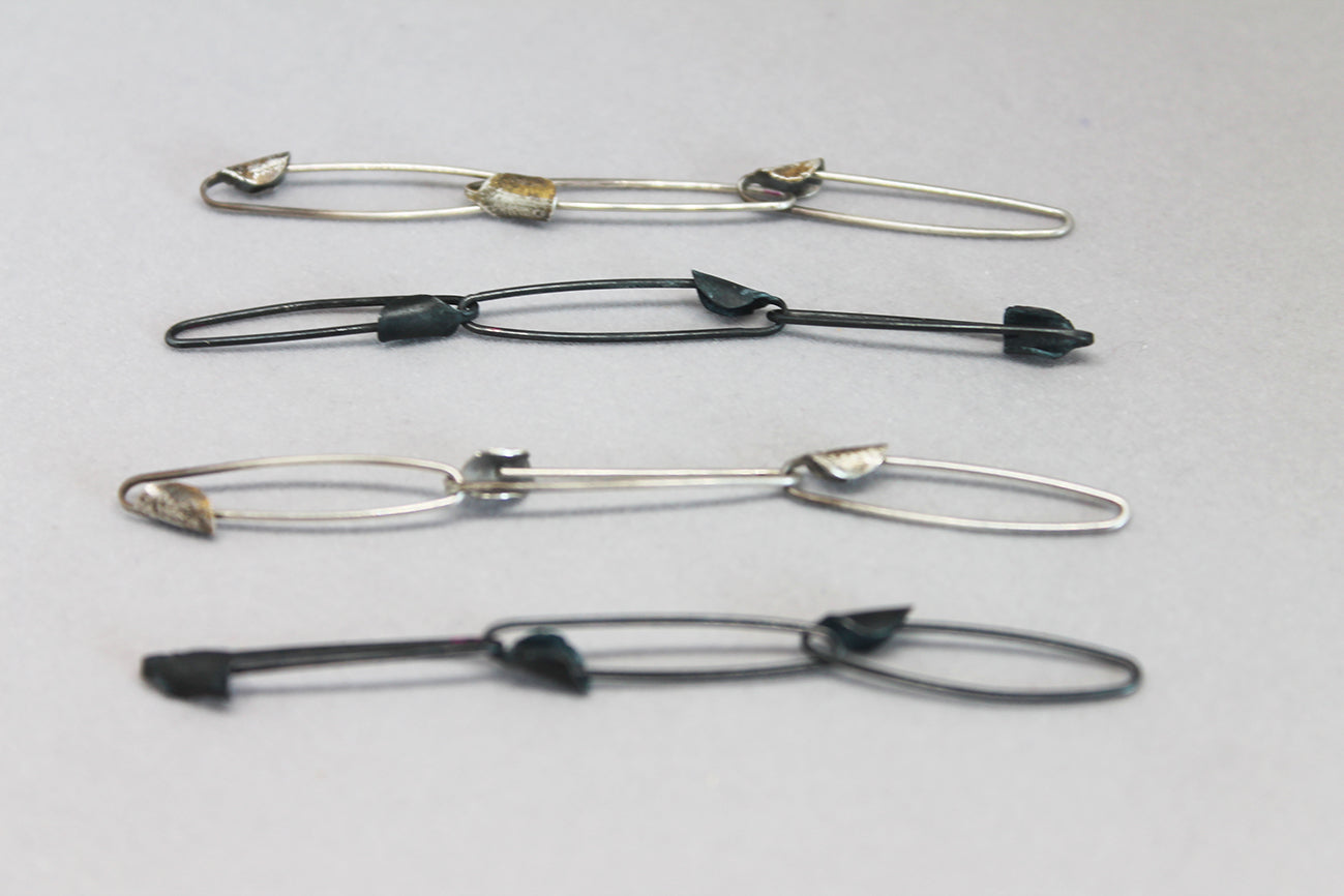 Each earring consists of 3 moveable handmade pins, long around 7,5 cm.