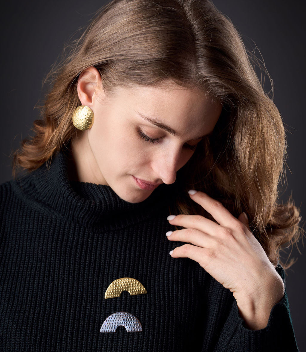 Contemporary jewelry made of silver, copper, and brass in combination with alternative materials where every detail is made by hand and from the heart.