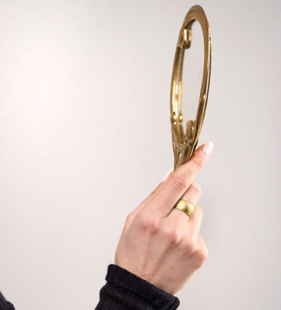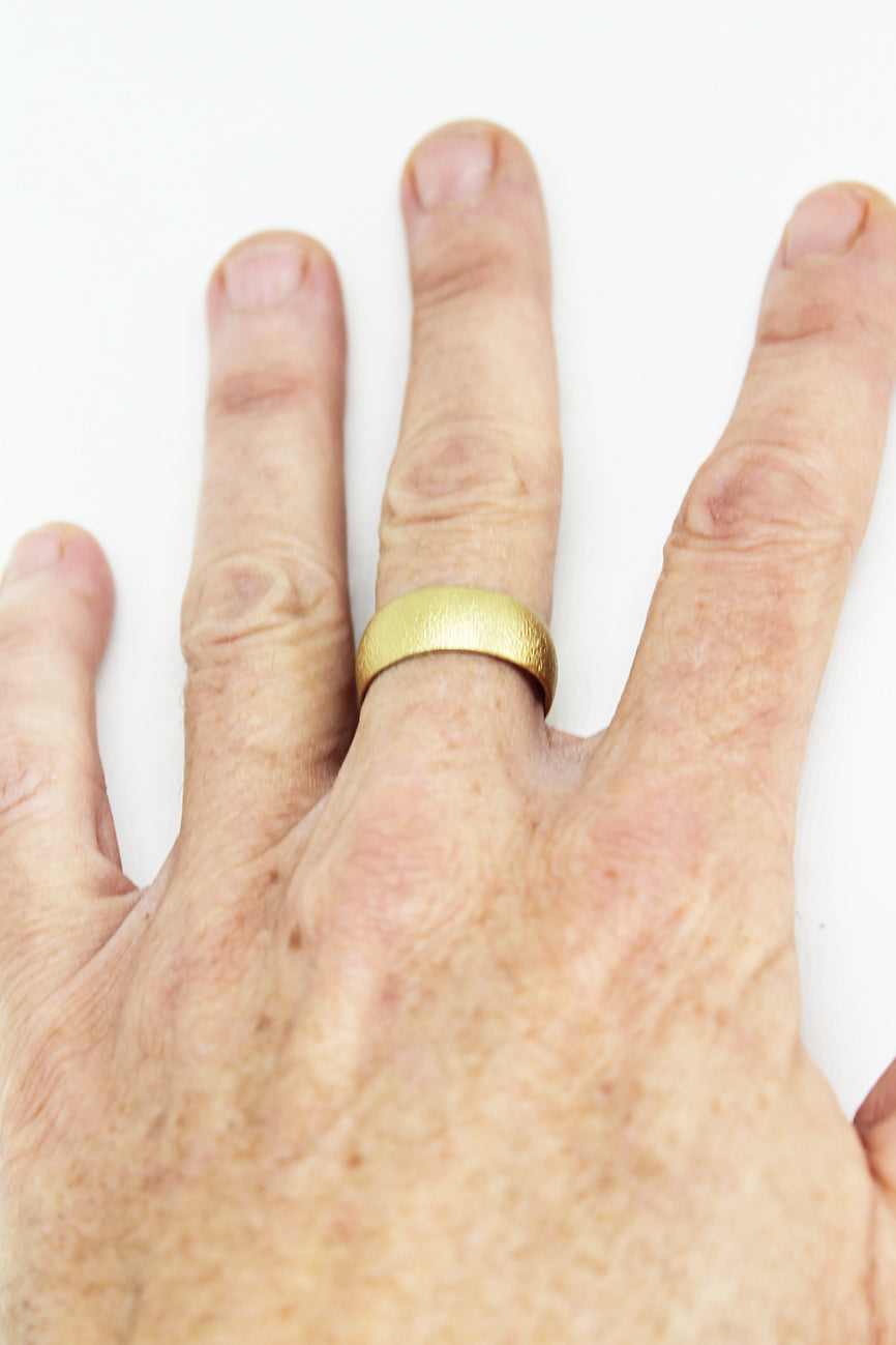 Modern and statement rings are handcrafted in textured brass shaped plate.