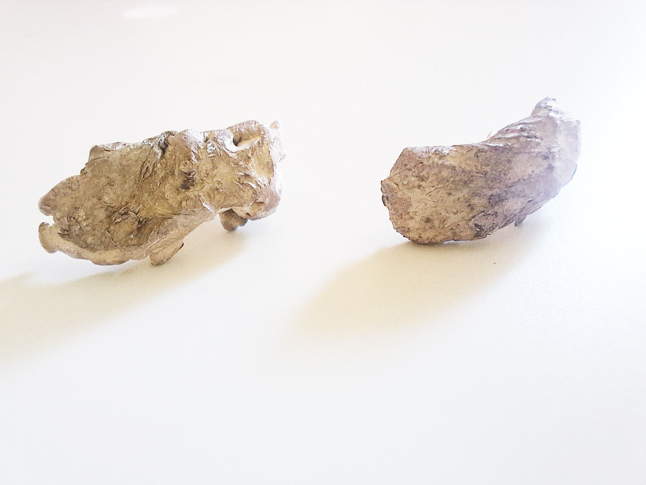 Leaving beautiful and charming textures in whiteish surface eventually shaped as mismatched oval earrings.
